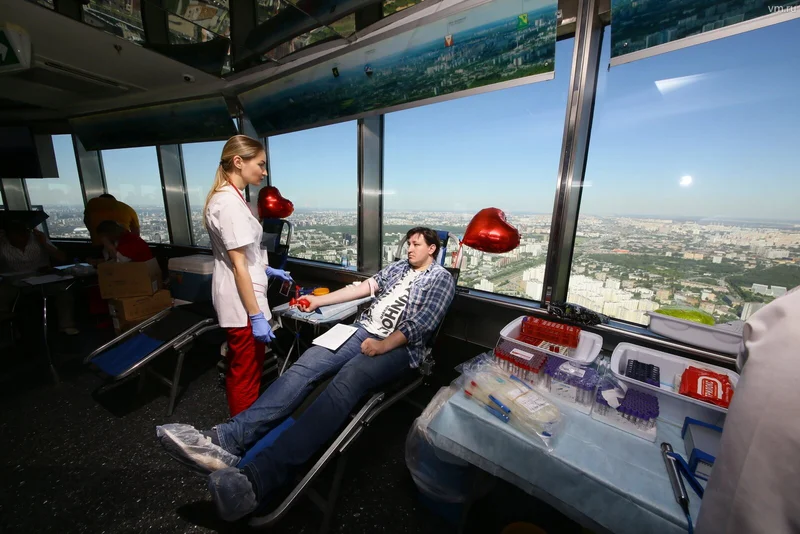 Москвичи сдавали кровь в Останкинской телебашне Всемирный день донора отметили в Москве 5 июня необычным способом — проведением забора крови на высоте 337 метров Новости 10 642