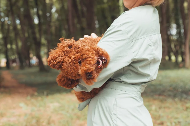 Пудель резвится на руках у хозяйки. Источник фото: 123rf.com
