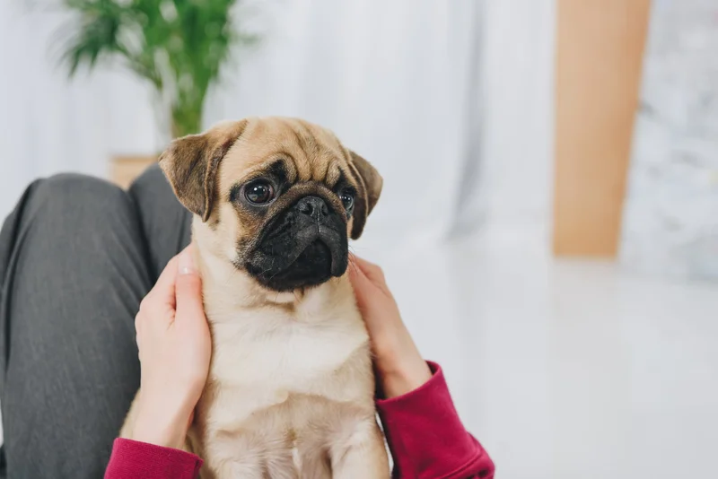 Мопс на руках у хозяйки. Источник фото: 123rf.com