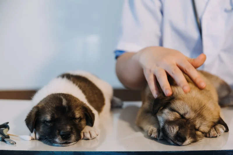 Осмотр щенков у ветеринара. Источник фото: 123rf.com