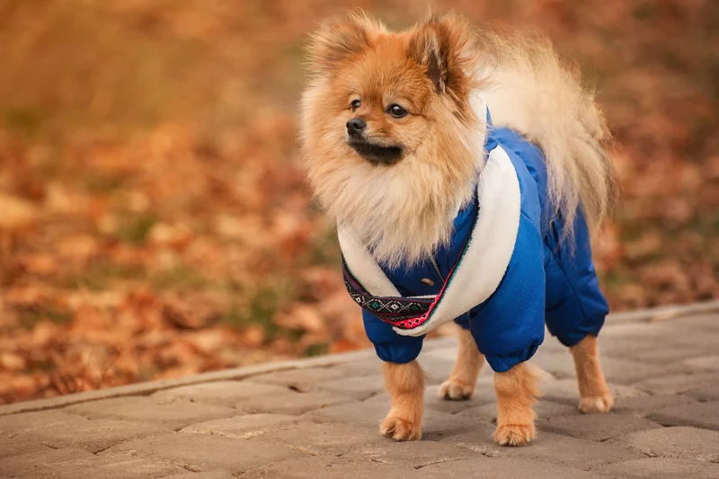 Шпиц в одежде в осеннем парке. Источник фото: 123rf.com