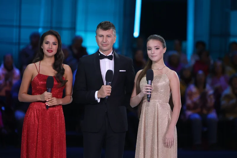 Ведущие телепроекта "Ледниковый период. Снова вместе" Алина Загитова, Алексей Ягудин и Анна Щербакова Источник фото: Пресс-служба Первого канала.