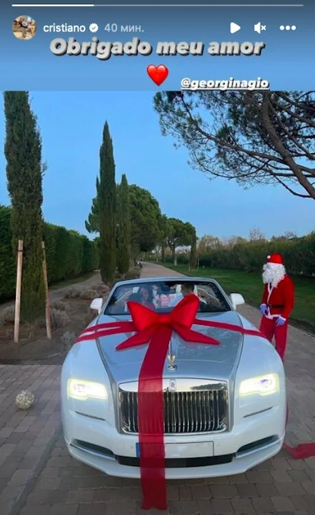 Жена португальского нападающего Криштиану Роналду Джорджина Родригес подарила ему на Рождество автомобиль "Роллс-Ройс".