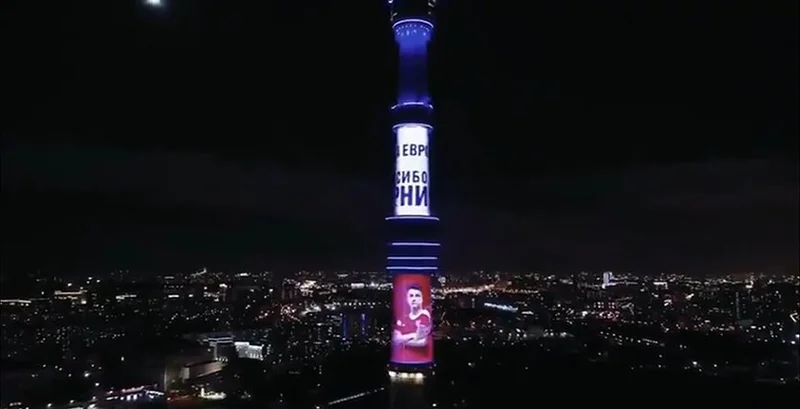 Останкинская башня засветилась цветами флага в честь сборной России по футболу Телебашня в Останкино необычным образом поздравила российских футболистов с досрочной квалификацией на чемпионат Европы 2020 года. Спорт 42 413
