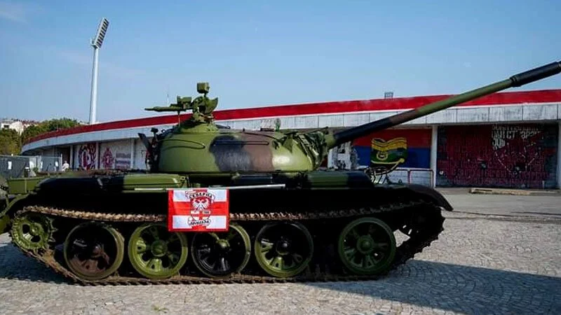Танк у стадиона в Белграде Минувшей ночью неизвестные разместили танк Т-55 возле стадиона имени Райко Митича белградской футбольной команды «Црвена звезда» Спорт 19 954