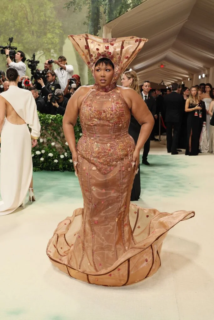 Певица предстала на Met Gala этого года загадочным, экзотическим цветком, благодаря необычной конструкции юбки с загнутыми краями и головному убору. То есть, «садовую» тему она поняла слишком буквально, не позаботившись адаптировать её должным образом.