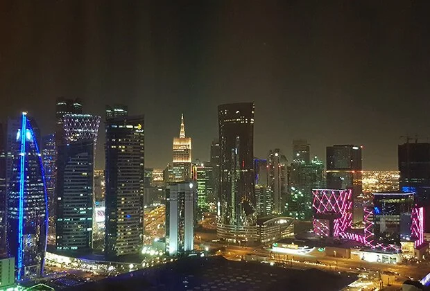 Темнота соскальзывает на Доху постепенно, не так стремительно, как в тропиках: есть время насладиться переливами лилового и розового и тем, как постепенно меняет цвет вода в заливе — с ярко-бирюзового до темного, как черный лак, в котором отражаются огни подсвеченных разными цветами небоскребов.