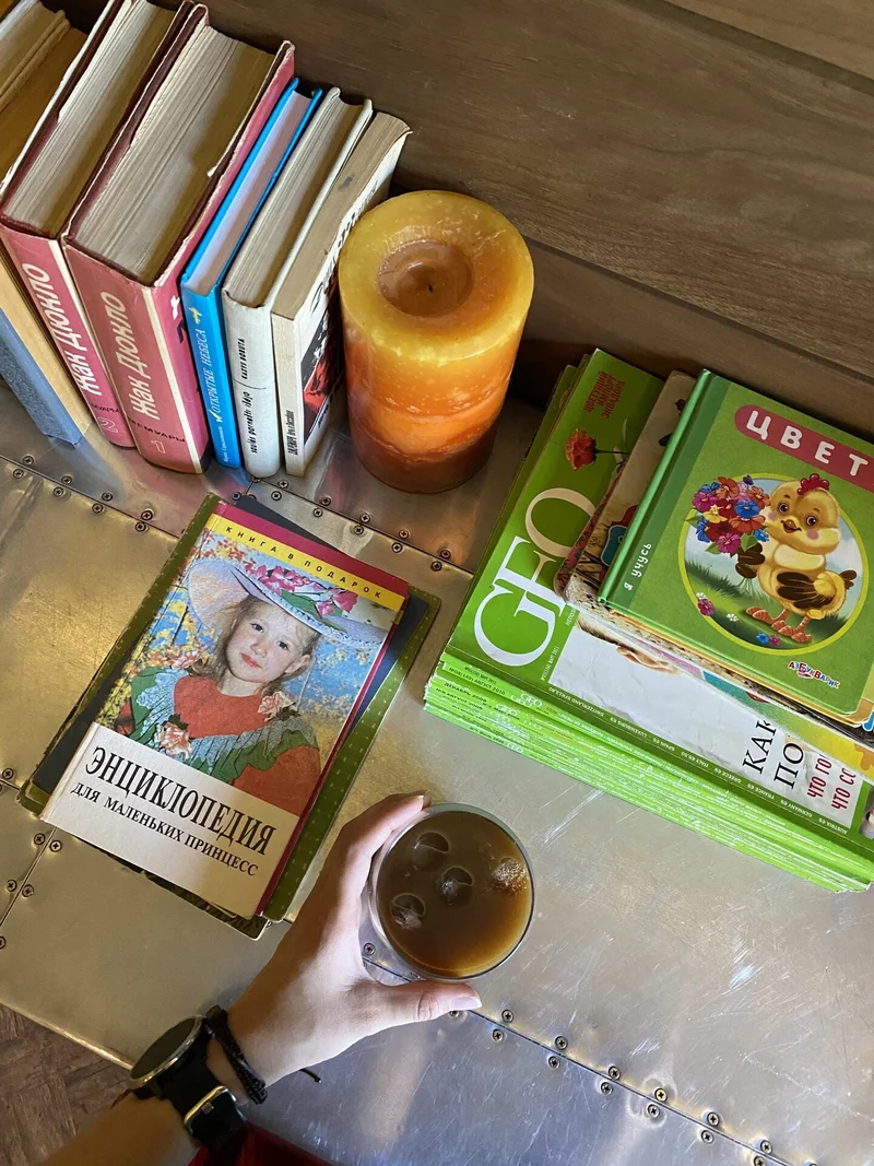 7) Пообедать в @saviv.bistro, взять эспрессо-тоник в кофейне в особняке Слепцова, зайти на книжную барахолку, купить книгу XIX века и болтать с подругой на подоконнике Дома книги.