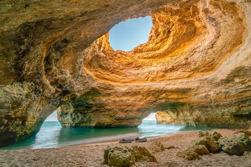 Без сомнения, это один из самых красивых уголков южной Португалии. Эти скалы в Бенагиле на побережье Алгарве скрывают сокровище в виде круглого грота с коротким пляжем, до которого можно добраться только вплавь или на лодке. Он расположен рядом с Бенагилом, рыбацкой деревушкой, в честь которой он и назван.